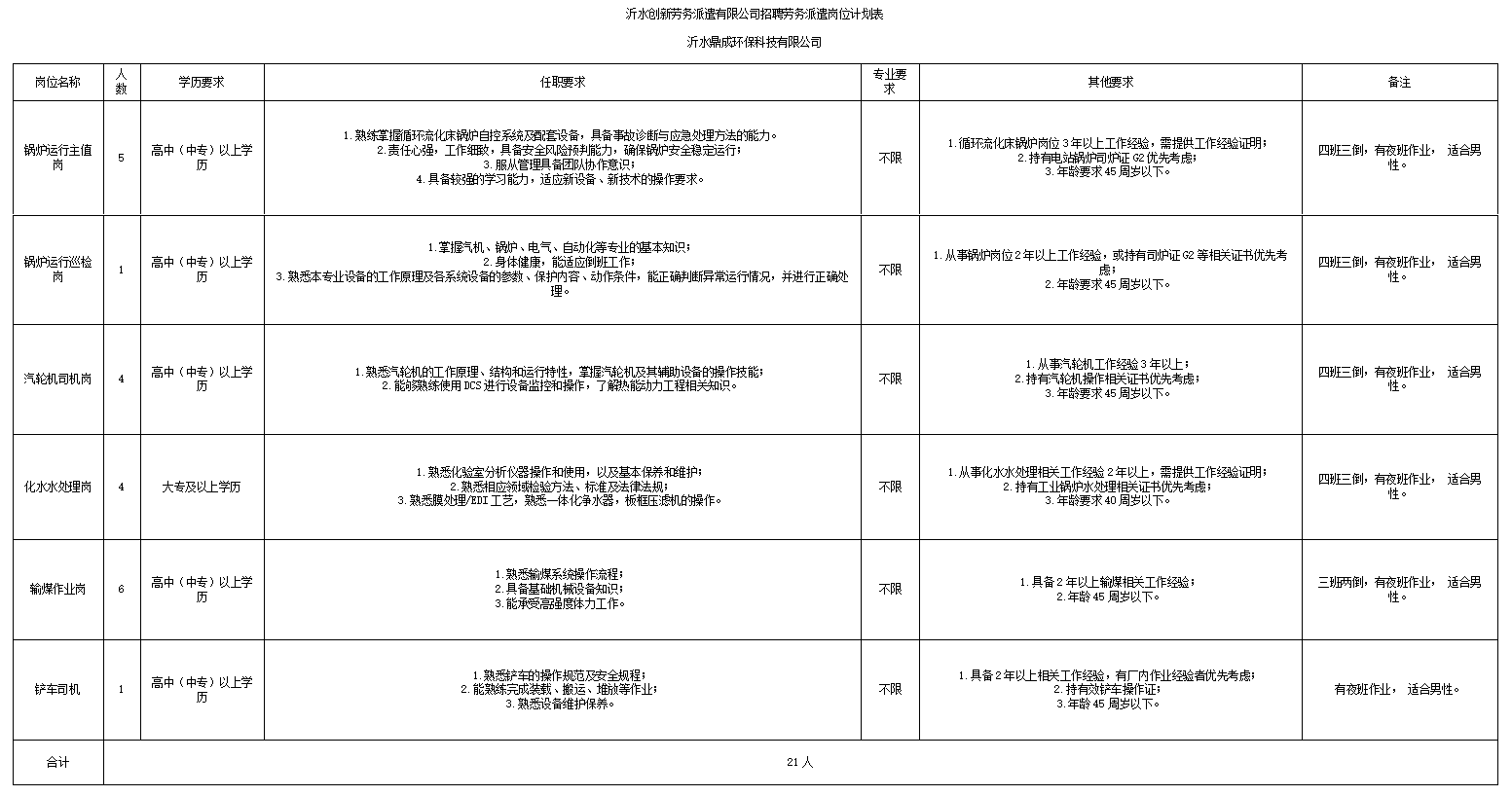 详见《沂水创新劳务派遣有限公司招聘岗位计划表》(附件1)。